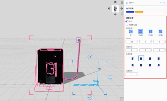您可以在模型的任意节点上添加切面,并可在此切面动作中配置模型其他节点的切面效果,例如切面方向与切面动画。