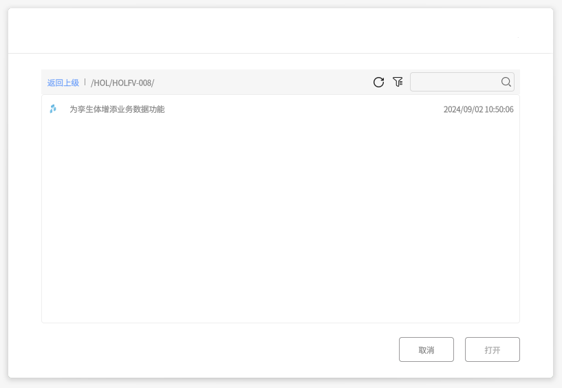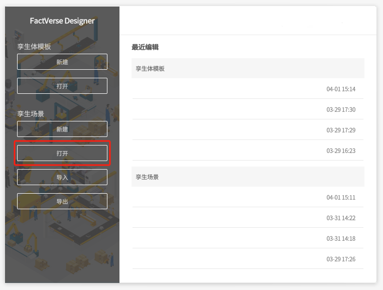 回到主页,点击【打开】之后依次点击HOL-HOLFV-008找到场景“为孪生体增添业务数据功能”进入FactVerse动手实验室08。