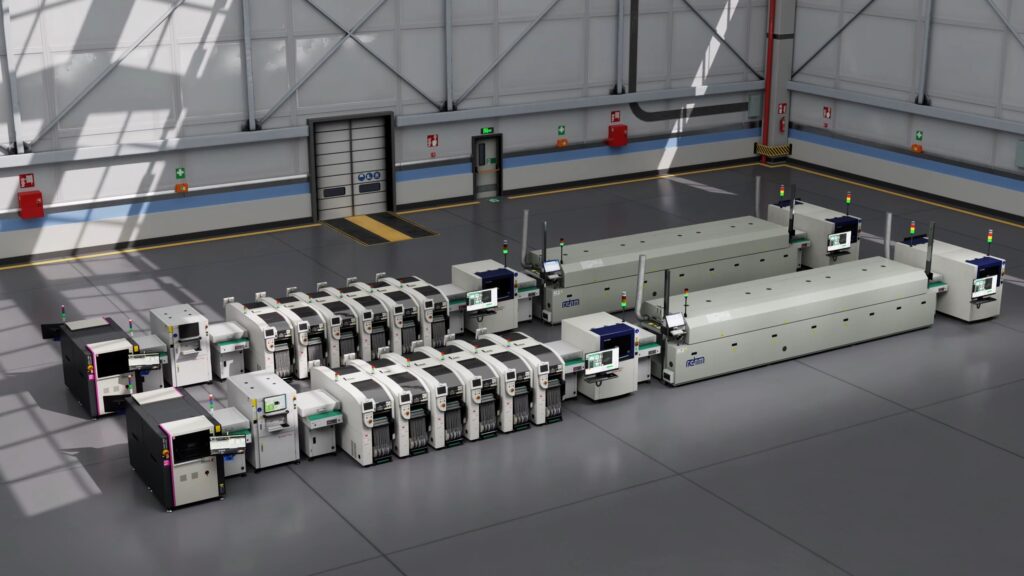 该企业基于 DataMesh FactVerse 构建 SMT 产线数字孪生,并通过数据融合服务(DFS),整合高速贴片机、SPI/AOI 检测设备、回流焊炉及 MES 等系统数据,实现产线运行状态与关键工艺、检测信息的实时 3D 可视化监测。当出现异常时,平台可在数字孪生场景中还原当时的设备状态与参数变化,帮助工程与现场人员更快定位问题、缩短停机时间。