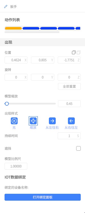 - 独立设置:每一场景页的操作面板位置都可以单独定义(添加姿态调整),播放时会根据场景页切换而显示在对应的位置。