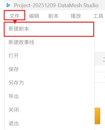 您可以通过以下方式在 DataMesh Studio 中新建一个剧本: