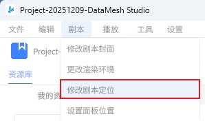 b) 点击菜单栏【剧本】-【修改剧本定位】,进入定位模式。