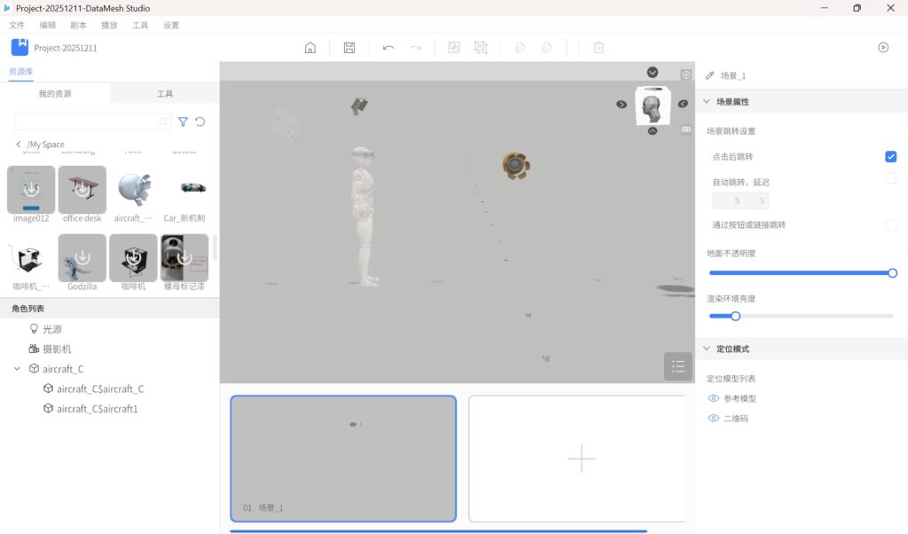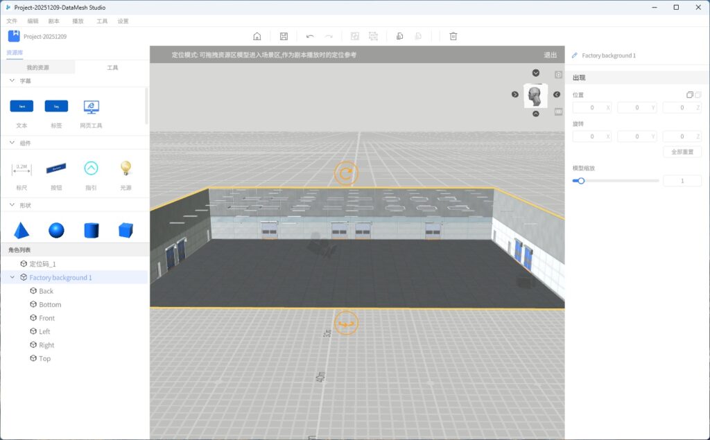 二维码定位是通过扫描或锚定方式,实现虚拟场景与现实空间的精准对齐。以下是如何在 DataMesh Studio 中添加、编辑和删除定位码的操作流程:
