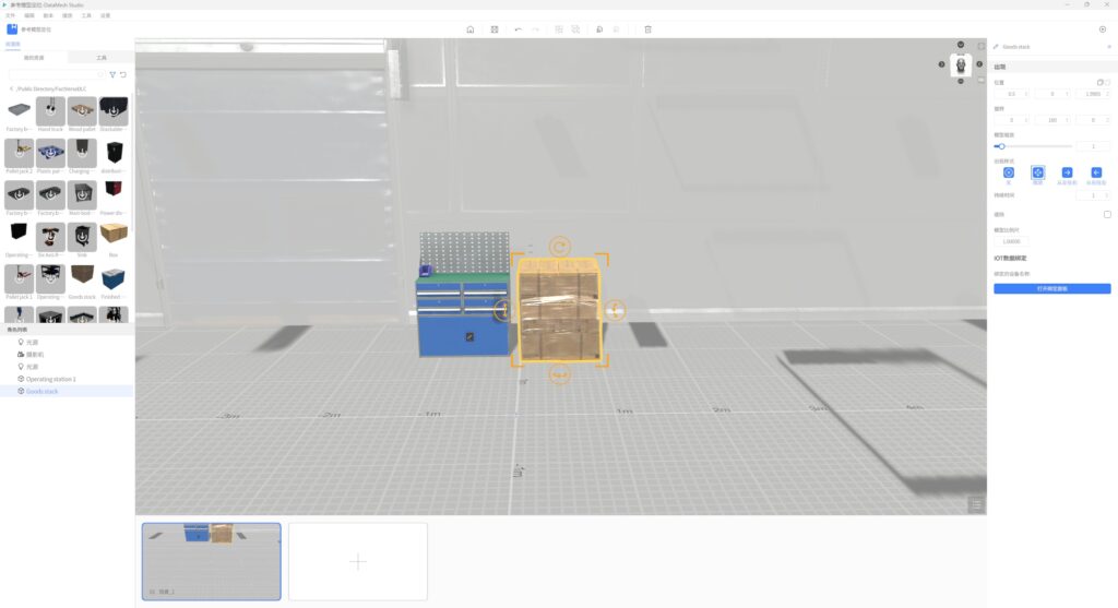 - 将资源库里的模型放置到场景区中,作为编辑剧本的参考背景。